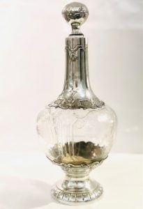 Flacon en cristal taillé et argent massif, de style Louis XV, époque Napoléon III. Hauteur : 30cm Prix : vendu