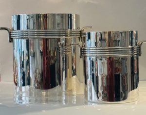 (Français) Dior j’adore ! : Seaux à champagne et glaçons by Corinne Javaloyes | May 27, 2023 | Christian Dior, Seau à champagne, Seau à glaçons | 0 comments Sorry, this entry is only available in French. Seau à champagne et seau à glaçons signés Christian Dior. Très contemporain par sa forme cylindrique, au décor de filets en applique et poignées assorties. Prix : vendu Partager Submit a Comment Cancel replyYour email address will not be published. Required fields are marked *Comment * Name * Email * Website Save my name, email, and website in this browser for the next time I comment.