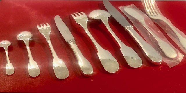 Ce modèle appelé Cluny, chez Christofle, est un ancien modèle qui existait déjà sous l’ancien Régime sous le nom de Vieux Paris.