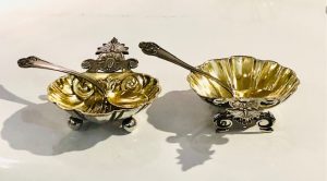Cet ensemble de salerons date du XIXème. Ils sont en argent massif et les intérieurs en vermeil.