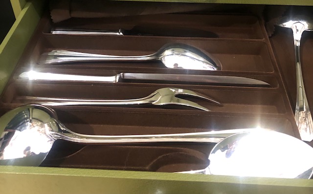 Cette ménagère, en parfait état, dans son coffre Christofle, est d’époque art-déco, 1929-1930, dont le designer est Luc Lanel pour Christofle.