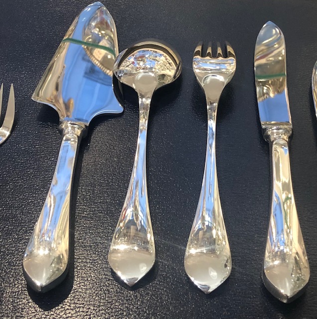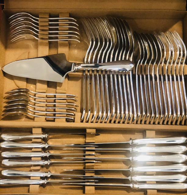 Argenterie d’Antan vous propose une ménagère de 49 pièces, signée Ercuis, modèle Citeaux, pour 6 couverts.