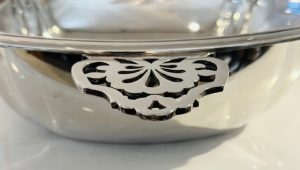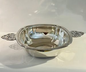 Rare jatte, en argent massif, de la maison Christofle, à la profondeur inhabituelle car très grande : 10cm, au décor classique mais néanmoins moderne et au charme de ses poignées repercées.