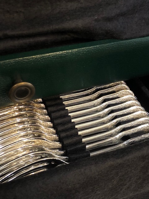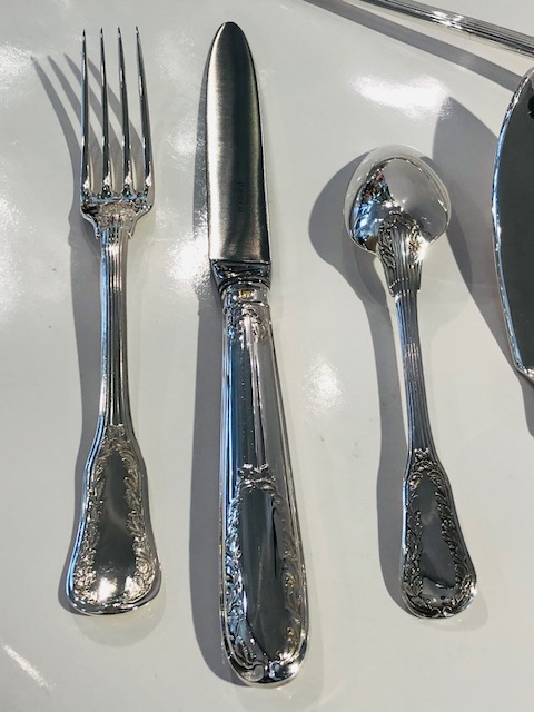 Cet ensemble de couverts et pièces de service, au décor feuillagé, est signé Puiforcat, orfèvre en excellence depuis 1820.