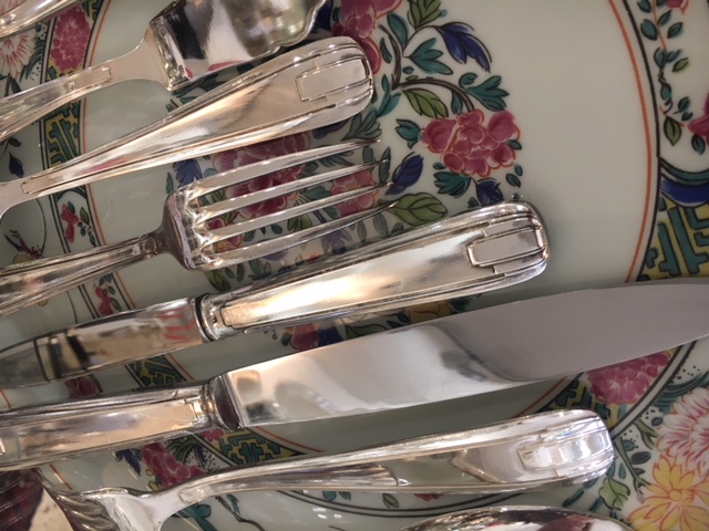 Ménagère, en métal argenté, orfèvre Vautrain (XIXème siècle), d’époque art-déco, en parfait état.